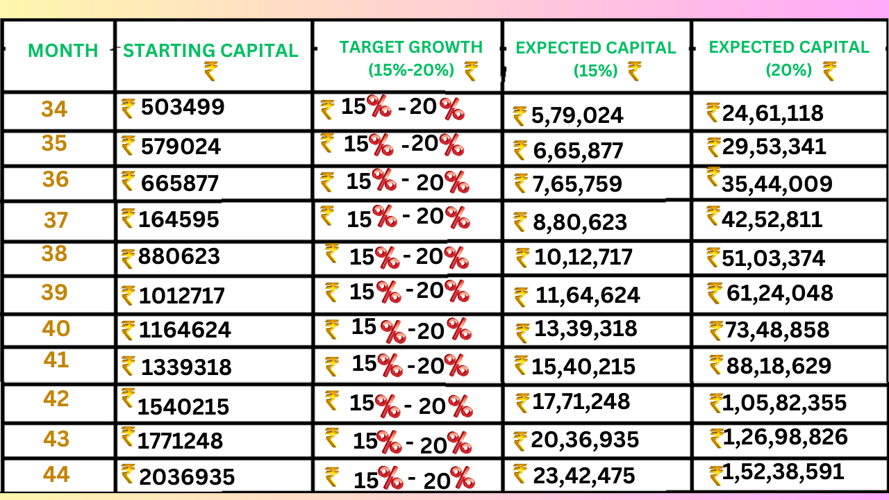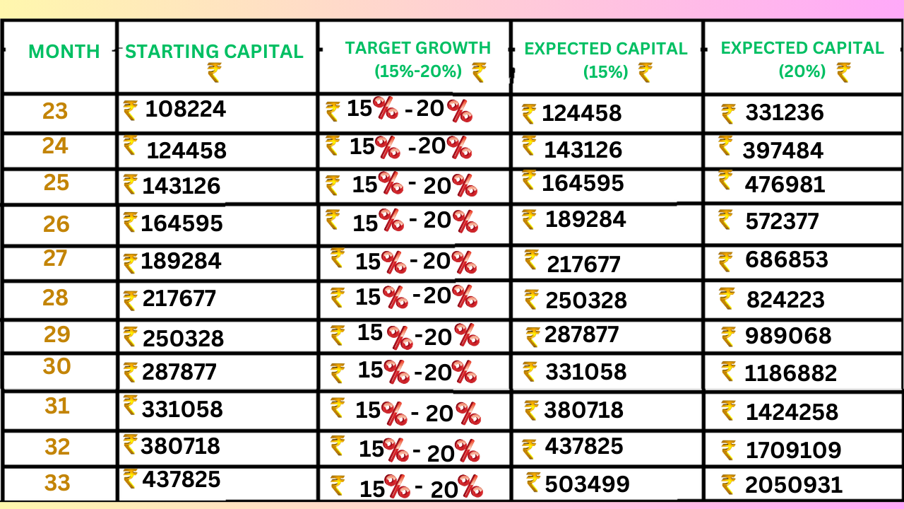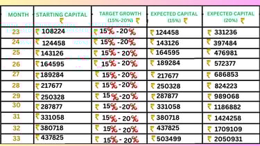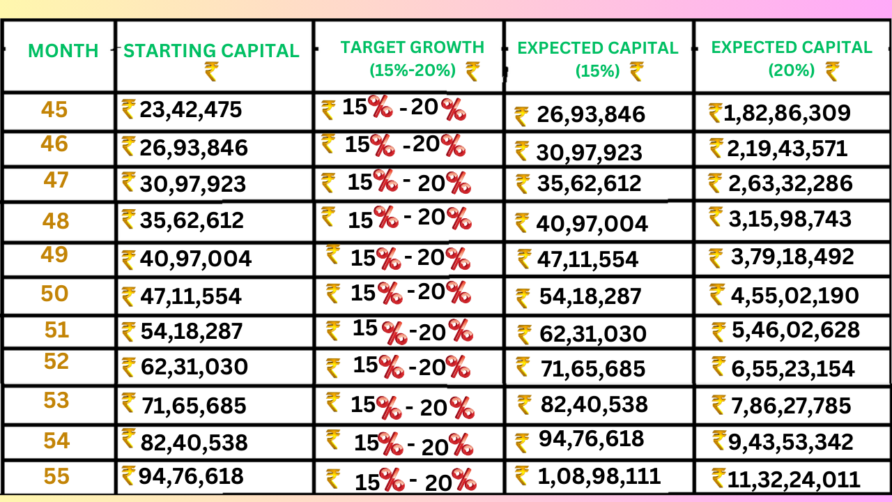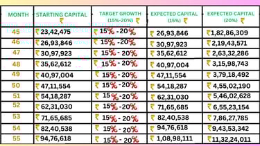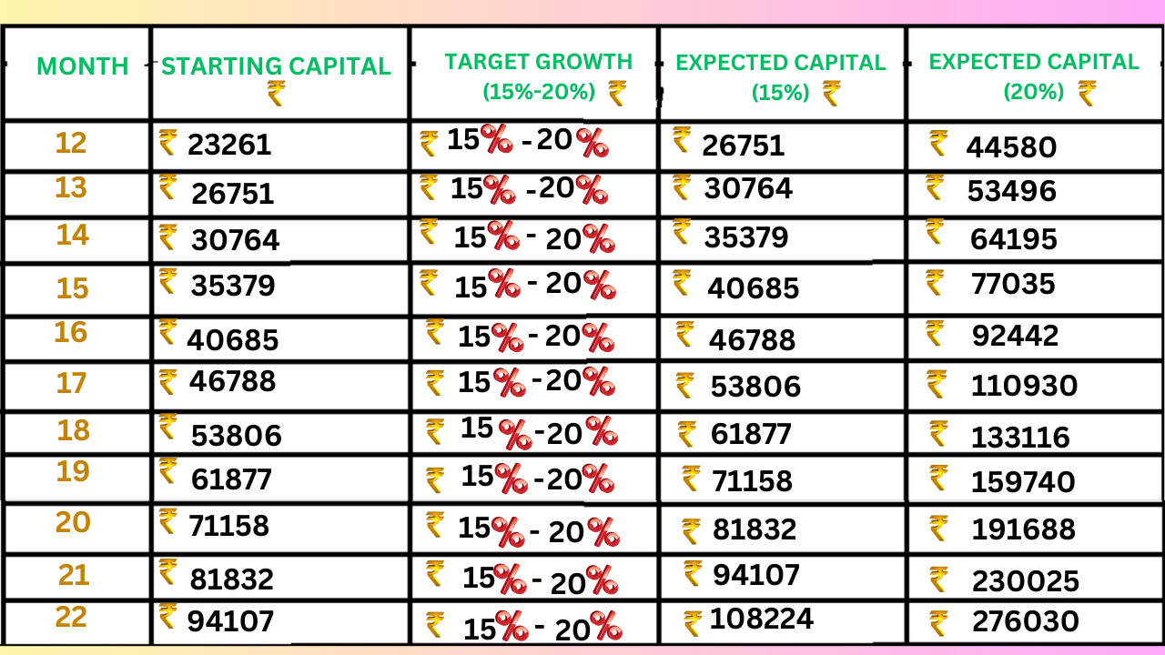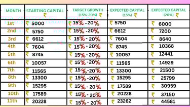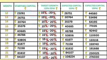✅ Aim for 15%-25% growth per month using compounding: