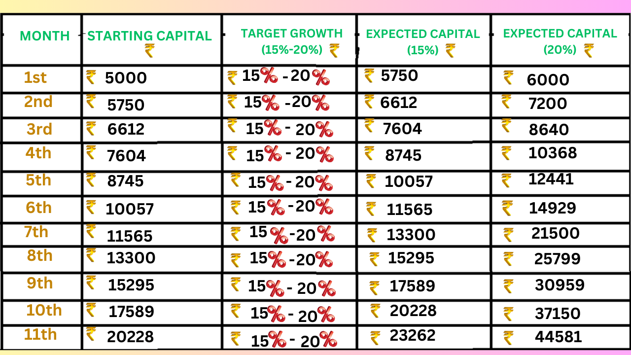 ✅ Track how your capital grows from ₹5K over time