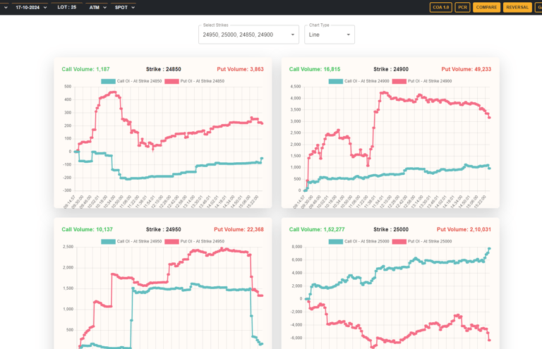 NIFTY,BANK NIFTY,FIN NIFTY,MIDCAP NIFTY SELECT AND STOCKS'S Detailed Option Chain,PCR Option Chain,I.V./T.V. Option Chain,Compare,Version 2024,HISTORICAL OPTION CHAIN,RECORDED LIVE CLASSES VIDEOS,OI CHART,REVERSAL VALUES,PCR VALUES, BUYING & SELLING STRATEGIES.