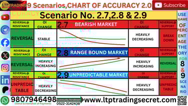 12In Scenario 2.8, the open interest on the call side and the open interest on the put side both are increasing heavily. This is a very interesting scenario. The call side is also increasing heavily and the put side is also increasing heavily. You get to see this scenario early in the morning around 9.15 to 9.30 am. Both are increasing in speed. In such a case, we get reversals from both the sides. When it gets support, the market will quickly move upwards from there and if it gets resistance then it will come back quickly. Trades are available from both the sides. This scenario is generally seen till 9.45 when both are in the race.