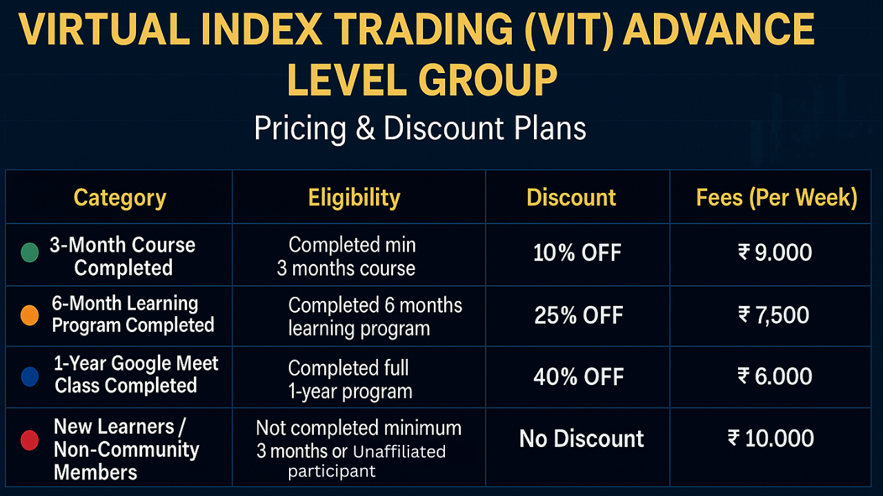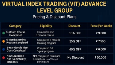 Send the screenshot of your Virtual Index Trading (VIT) Advance Level Group weekly payment to 9807946498 to receive your secret coupon code and password for trading with Shailendra Singh Sengar on the Google Meet real-time trading platform.